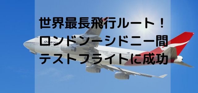 海外旅行ニュース 世界最長飛行ルート!ロンドンーシドニー間のテストフライトに成功 移住者 海外移住情報 オーストラリアの航空会社カンタス航空が、ロンドンーシドニー間約1万7000㎞を、19時間19分のノンストップ飛行を達成しました。 この …